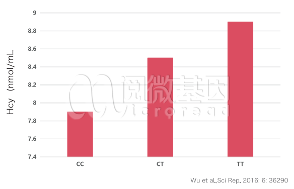 研究表明,MTHFR 编码基因的碱基发生突变,造成酶活性降低,可导致血清 Hcy 水平升高。
