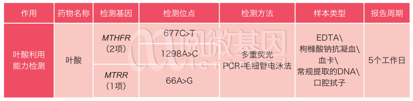 利用多重荧光 PCR- 毛细管电泳法,检测人类外周血液基因组中的 MTHFR/MTRR 的基因多态性,为临床鉴别患者对叶酸敏感性给予帮助。