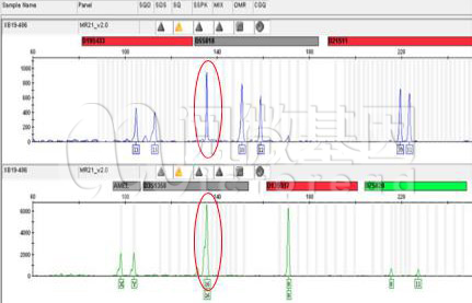 在一个基因座上,杂合型的两个峰的面积比值大于2:1;或纯合型的单峰的值超过原本单峰面积的2倍时,可以判定此基因座存在不均衡性现象。