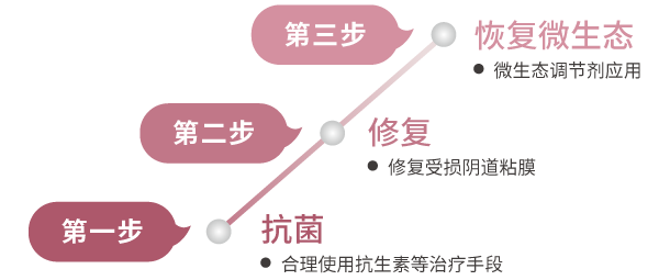 中华医学会、中国医师协会共同指出:生殖道感染的本质是微生态失衡,生殖道感染的终极治疗目标是恢复微生态平衡。推荐的做法是: