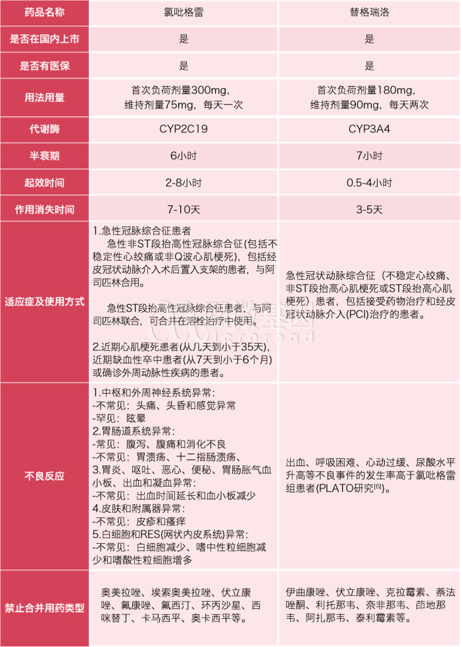 氯吡格雷与替格瑞洛对比
