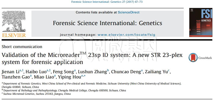 我们或多或少可能都会接触一些试剂盒验证的项目及任务。可不要小瞧验证实验,如果严格地对一款试剂盒实行各项验证实验,其数据是可以发表在法医学顶级期刊的!比如 ■澳门十大棋牌排行榜最新■澳门十大棋牌排行榜推荐 的Microreader™ 23sp ID System 试剂盒,验证实验由华西医学院侯一平老师独立进行,验证结果发表于法医学顶级期刊FSI:Genetics (图1)。验证工作的重要性可窥一斑。