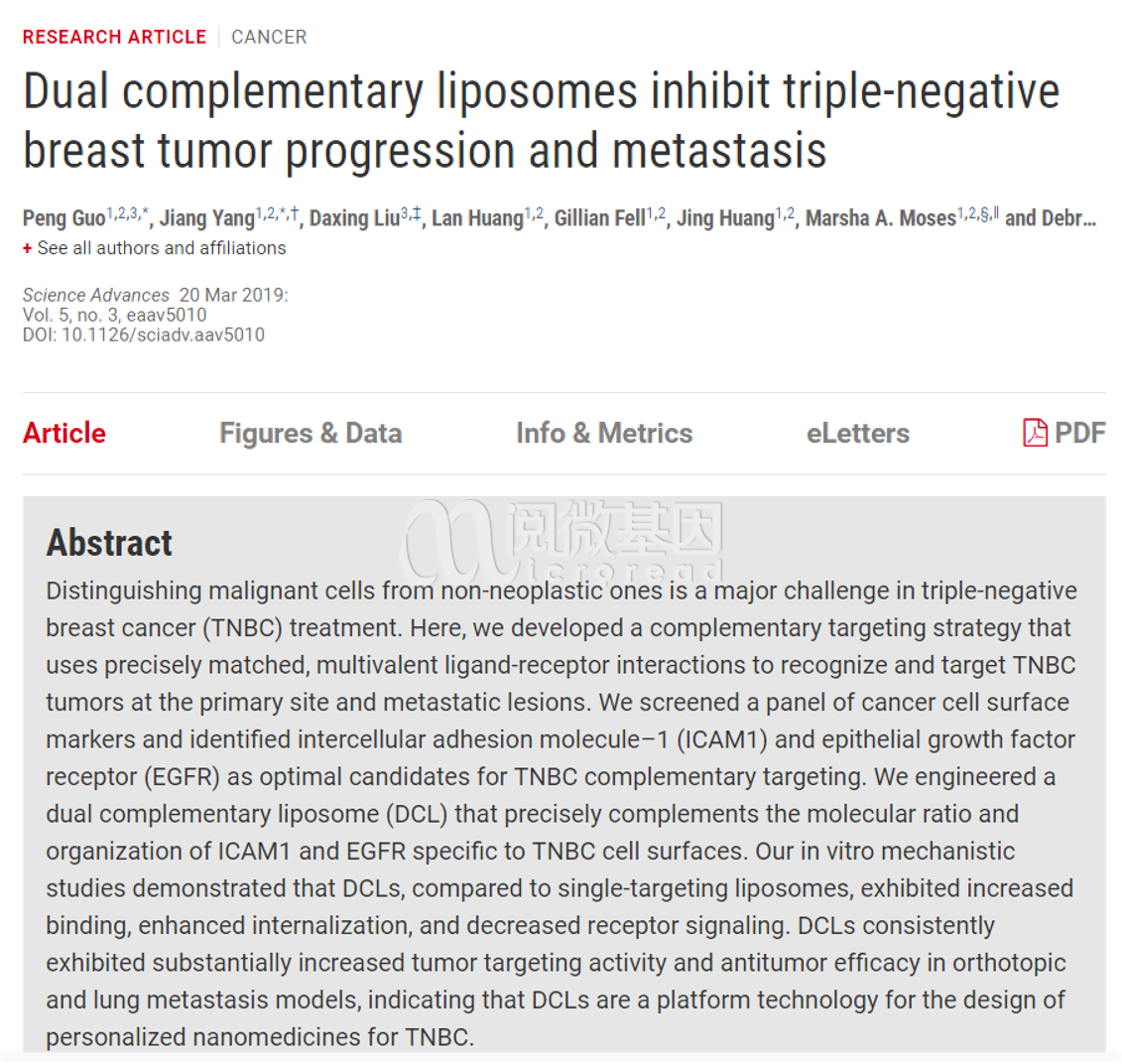这一研究成果发表于Science Advances杂志。这项研究由波士顿儿童医院Moses实验室华人学者郭鹏(Peng Guo,音译)和杨江(Jiang Yang,音译)领导完成。