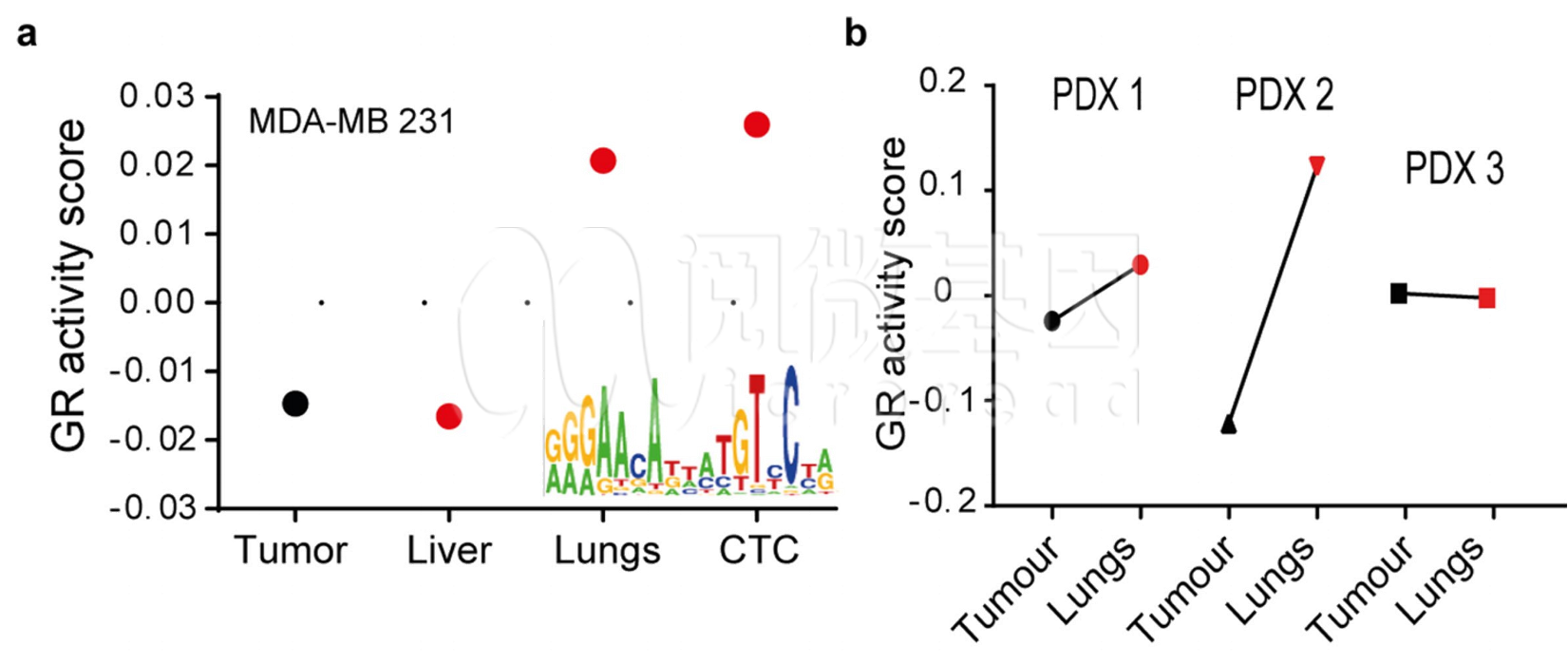研究人员在动物模型中惊讶的发现,与未转移的小鼠相比,发生癌细胞转移的小鼠应激激素皮质醇和皮质酮的浓度更高。而这些糖皮质激素水平的升高增强了糖皮质激素受体(GR)的活性,并引起癌细胞定殖和异质性的增强。