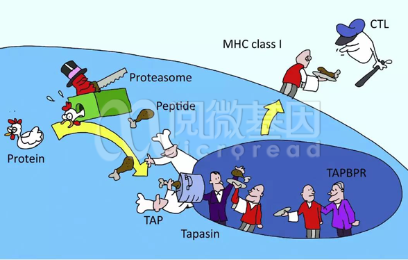 我们需要先分析细胞展示抗原的过程。细胞有一种叫肽组装复合体(PLC)的装置,位于内质网上,能将细胞内的小蛋白片段(即肽)进行处理,然后转移到细胞膜上的MHC上。这就是抗原展示的过程。而癌细胞的新抗原,也是顺利获得PLC展示到细胞表面的。若PLC被破坏,那肿瘤的新抗原就不能被挂到细胞表面,也就不能被免疫系统识别了。