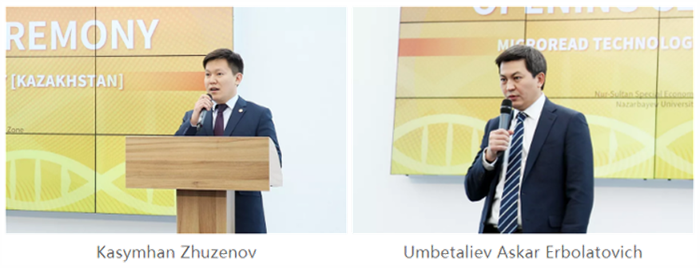 纳扎尔巴耶夫大学校长助理Kanat Baigarin对哈萨克斯坦阅微的开业表示了热烈的祝贺和欢迎。同时,纳扎尔巴耶夫大学教务长Ilesanmi Adesida指出了基因产业是新的技术,值得大力开展,对此充满了期待。