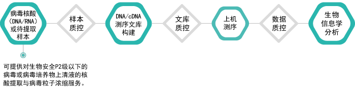 在病毒研究和相关生产当中,传统的Sanger测序方法只能够对已知序列病毒的特定序列进行扩增测序,而病毒基因组测序可基于高通量测序技术平台上对病毒全基因组进行测序,利用生物信息分析手段,得到病毒的全基因组序列,解析编码信息,并取得相应的变异信息。