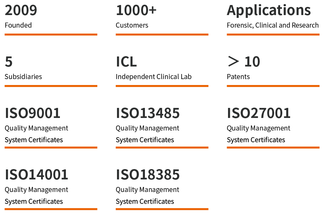 Microread Genetics have obtained various certifications, like national high-tech enterprise, national public safety product and ISO quality management system certifications. We also obtained Class III medical device production license and owned a independent third-party clinical laboratory, with dozens of invention patents and software copyrights. Microread Genetics has received multuple national, provincial and municipal project fundings. At present, it has nearly 300 employees and the annual gross income is over 100 million CNY.