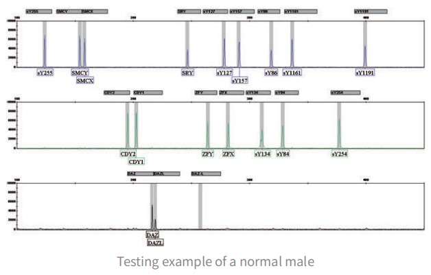 Not only detect the completely deletion of AZFa/b/c, but also detect the partial deletion/replication of AZFb/c and sex chromosome aneuploidy.
