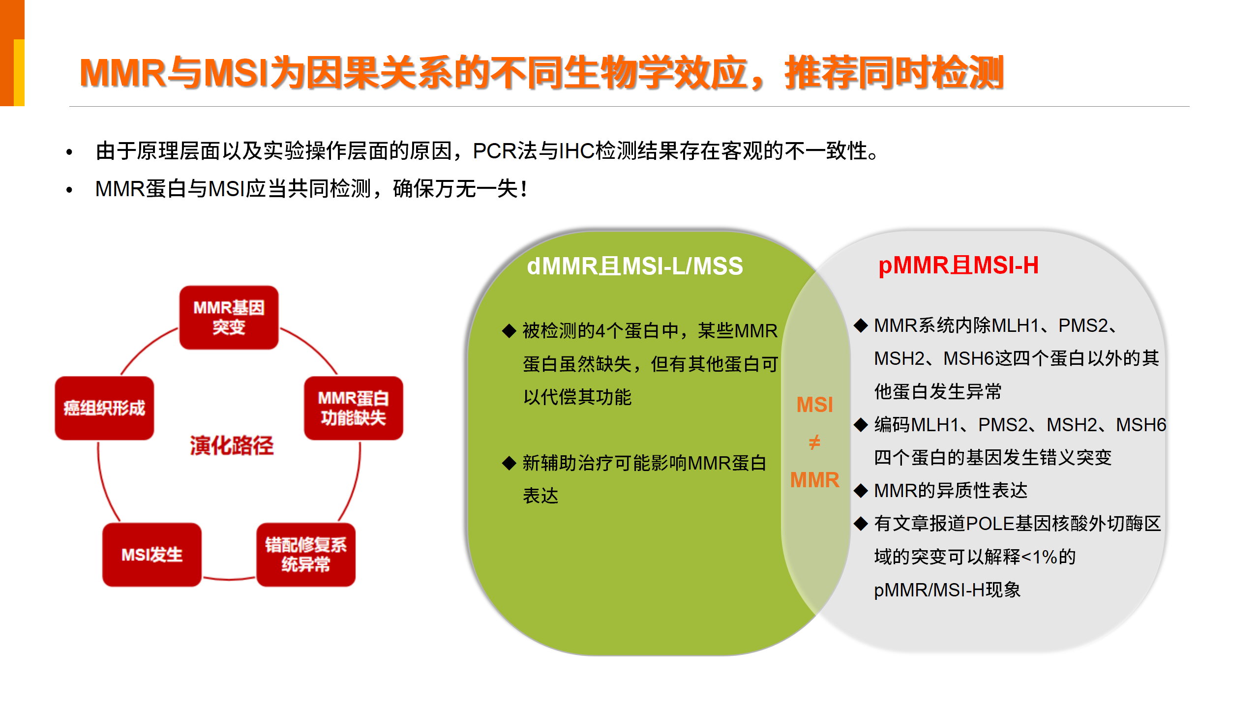 总体上,研究表明,约10%的CRC患者存在MSI-PCR和MMR-IHC检测结果不一致的情况,从而会对患者治疗选择产生影响。