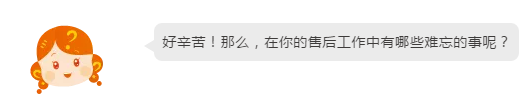 舒畅:非常多,从素人小白到现在客户眼中的专业人员,从新人到公司先进员工。在做这份工作时的不拖沓、力求准确,保持冷静与和气的态度,也深深的影响了我的生活态度,成为一个更好的人。对了,顺利获得售后技服,我去了很多地方,交了很多好朋友。现在可以说知交满天下噢!