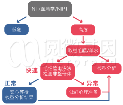 注:介入性产前诊断作为NT、血清学唐筛、NIPT产前筛查高危者的后续确诊项目,具有创伤性。