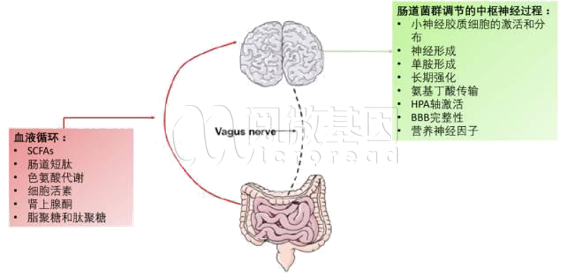 肠道微生物可以顺利获得产生或分泌物质影响大脑,同时大脑也可以顺利获得特定系统向肠道反馈信息。这种从肠道到大脑和从大脑到肠道的双向连接传递系统被称为“肠脑轴”或者“脑肠轴”。