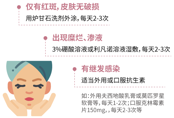 ⑥ 如果皮肤肿胀瘙痒,可以用0.9%的生理盐水湿敷,一般敷15~30分钟,能够很好缓解皮肤瘙痒、胀痛等症状。如瘙痒明显,医生建议用氧化锌软膏、糠酸莫米松乳膏或者他克莫司软膏外涂。