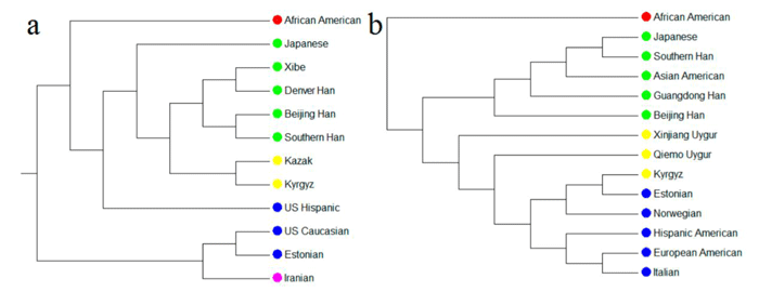 Y染色体短串联重复序列(Y-STRs)已广泛应用于法医案件侦察,如从公安数据库中检索谱系、男女混合样本中的男性身份鉴定等,而Y-SNPs 的补充应用则仍在讨论中。本研究使用27个Y-STR 标记和 24个Y-SNP标记共同构建山东汉族(n=305)和云南汉族(n=656)谱系,证明Y-SNP在种群分化及男性谱系区分具有重要价值。第一时间顺利获得27个Y-STR标记对15个地方汉族进行MDS分析,除云南彝族(样本量小)外,阿尔泰语系和汉藏语系可被显著区分。中国汉族又可分为四个大群:山东和济宁、上海、海南及常州/江苏/广东/云南,验证了本研究中选取的山东和云南汉族具有遗传学上的差异。接下来分析两个汉族群的Y-SNP组成。发现其中5个SNPs具有显著的等位基因频率差异。其中,4个单倍型(O1a, O1b, O2a1和O2a2b)在两族群中有显著的分布差异:O1型在云南汉族频率较高,而O2型在山东汉族中较高。印证先前的研究:O1a单倍型主要分布在华南及东南亚一带。基于本研究,Y-STRs和Y-SNPs联用将有助提高Y染色体数据库男性谱系的分辨率,尤其是地理族群的差异。本研究中的Y-SNPs分子标记检测采用 ■澳门十大棋牌排行榜最新■澳门十大棋牌排行榜推荐 Y-SNP谱系标记系统。