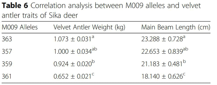 团队发现和鹿茸产量及主枝长度性状相关的一个EST-微卫星标记M009