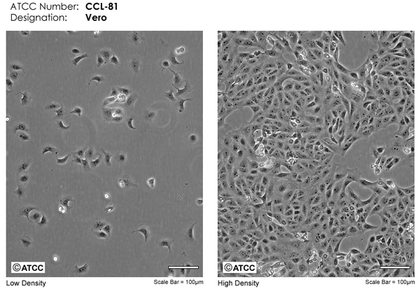 Vero细胞是非洲绿猴肾细胞,细胞系的名称来源于“Verda Reno”(世界语意为‘绿色的肾脏’)简写而命名“Vero”,它是一种非整倍性的传代细胞系(Continuous cell lines,CCL),最早由日本千叶大学的Yasumura 和 Kawakita 于1962年3月27日分离出来。它是第一个用于生产人类生物制品和建立不同世代的细胞系和细胞库的非整倍体贴壁细胞。