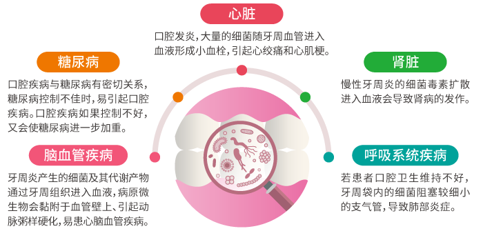 人体微生物存在于人体的多个部位,美国人类微生物组计划(human microbiomeproject,HMP)关注的主要部位就是肠道、口腔、皮肤、鼻腔和泌尿生殖道。口腔微生物组是人体五大菌库之一,它的失衡不仅可诱发多种口腔疾病,如龋病、牙髓根尖周病、牙周病、智齿冠周炎、颌骨骨髓炎等,还与糖尿病、心脑血管疾病、肾病、呼吸系统疾病等全身疾病紧密相关,对人类健康影响重大。下面我们来分析一下,哪些疾病与口腔微生物密切相关。