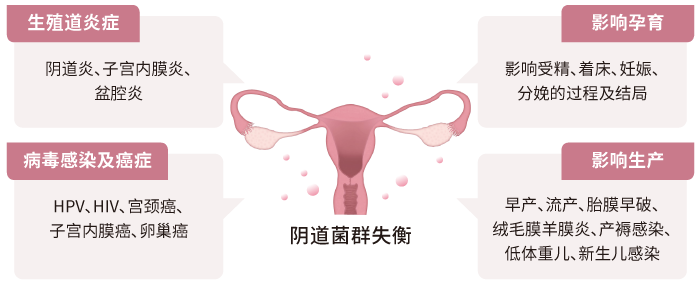 私处菌菌失衡,以CST IV型阴道菌群为代表(阴道内乳酸菌数量减少,致病菌数量增多,或者外源病原体侵入),容易导致细菌性阴道炎及各种疾病的发生。